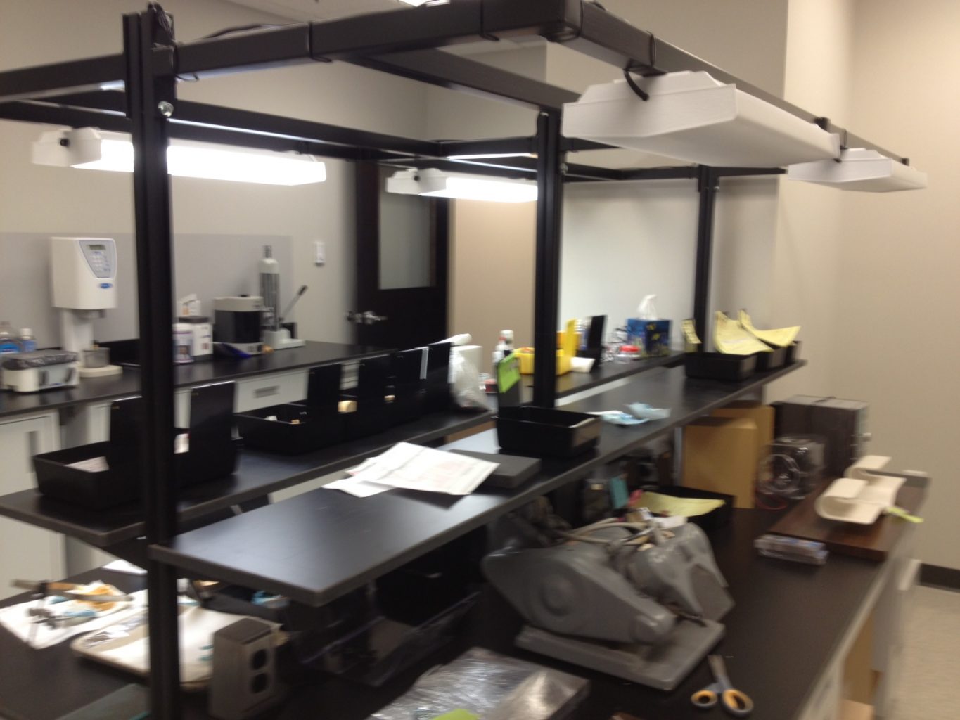 LOC’s dental lab workstation has a quiet, powerful, vibration-free, fractional horsepower, variable-speed dust collector motor with a lighted power switch. Dust is collected in a unique, disposable filter bag. The dust collector motor may be operated in either manual or automatic modes. In manual mode, the power switch operates the dust collector motor. In automatic mode, the electric handpiece controls the dust collector motor. The control panel includes indicator lights, which monitor the performance of the filter bag and dust collector motor. Exceptional shadow-free lighting is provided by 2 55-Watt color-correct fluorescent tubes.